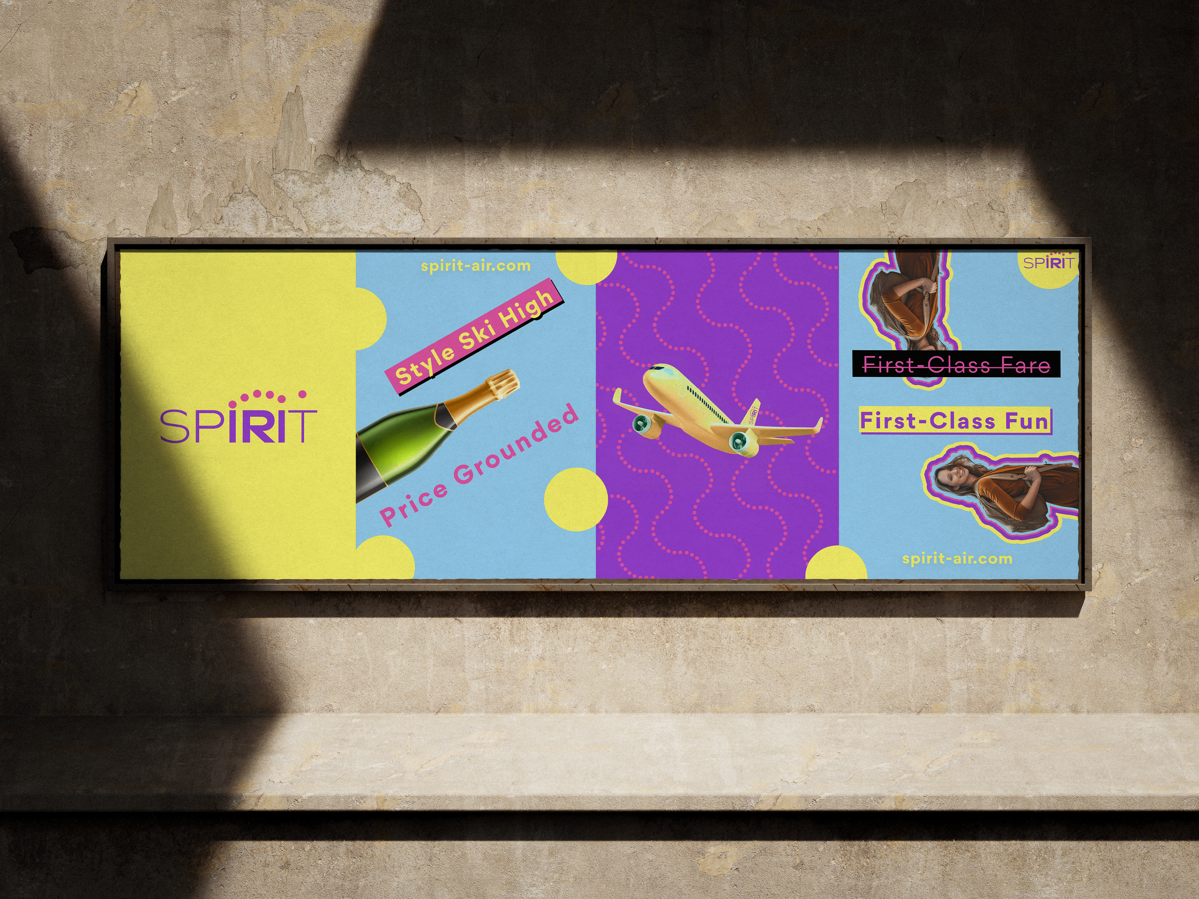 A bold rebrand for Spirit Airlines, bringing style and fun to economy travel without the premium price tag. Designed for savvy young travelers this concept reimagines flying with flair and a retro jet-age vibe.